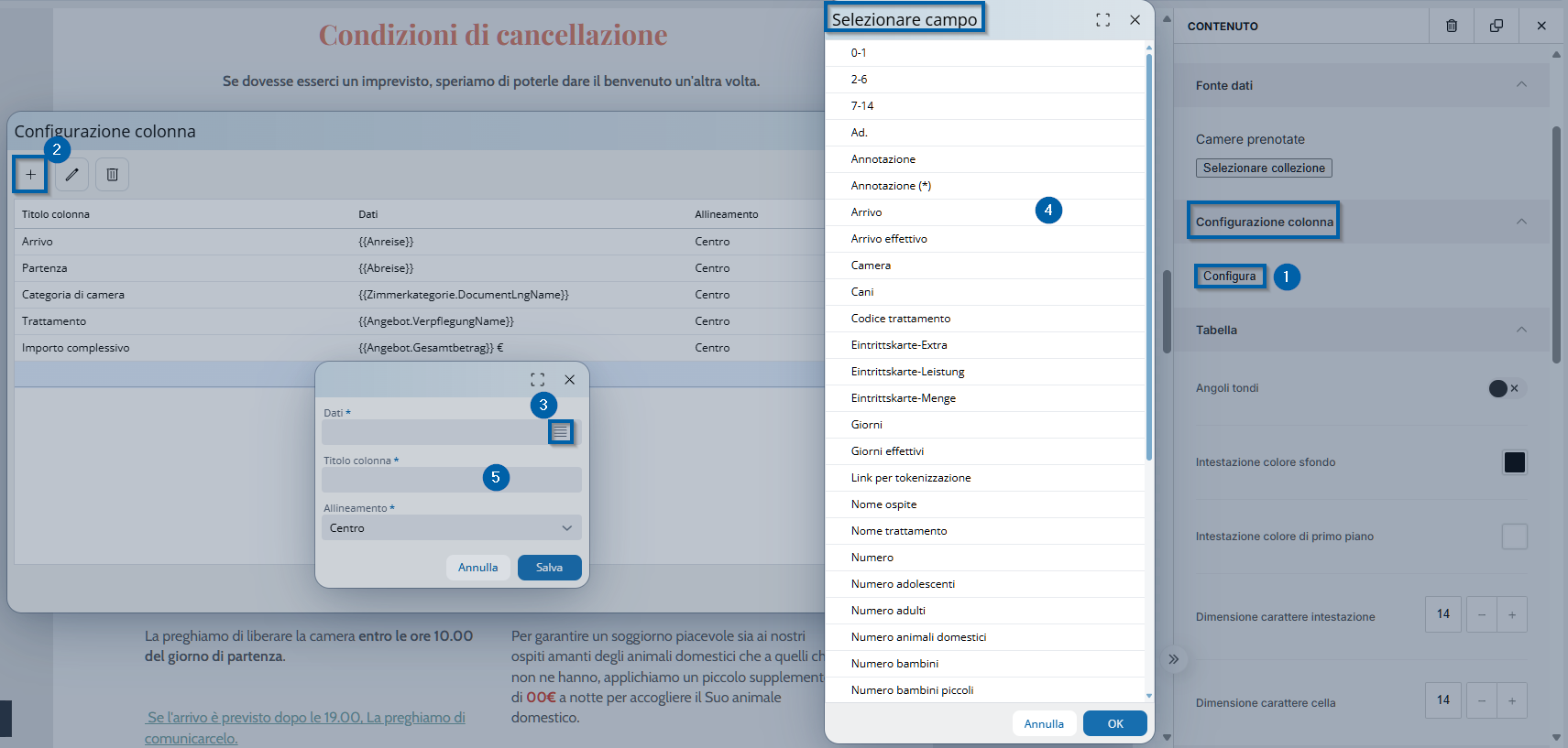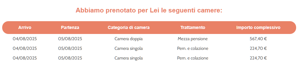 I contenuti della tabella vengono riempiti dinamicamente in base ai dati di prenotazione.