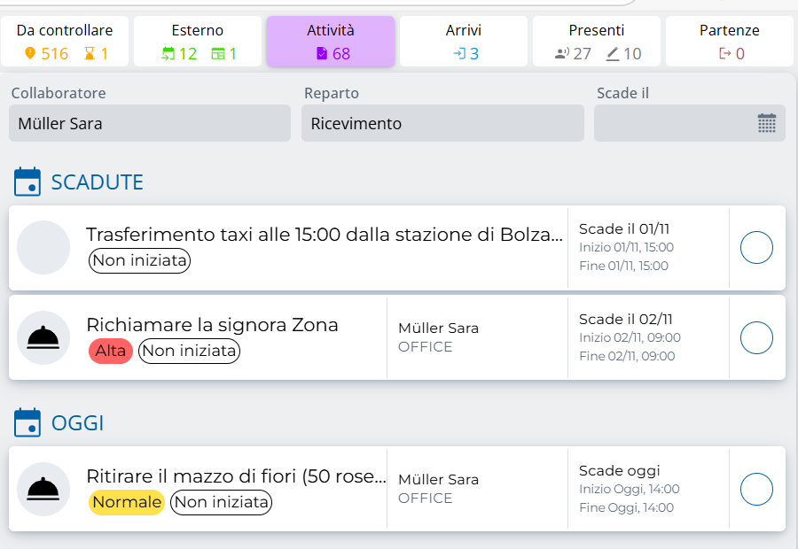 - Le attività globali che non sono assegnate né a un reparto, né a un collaboratore