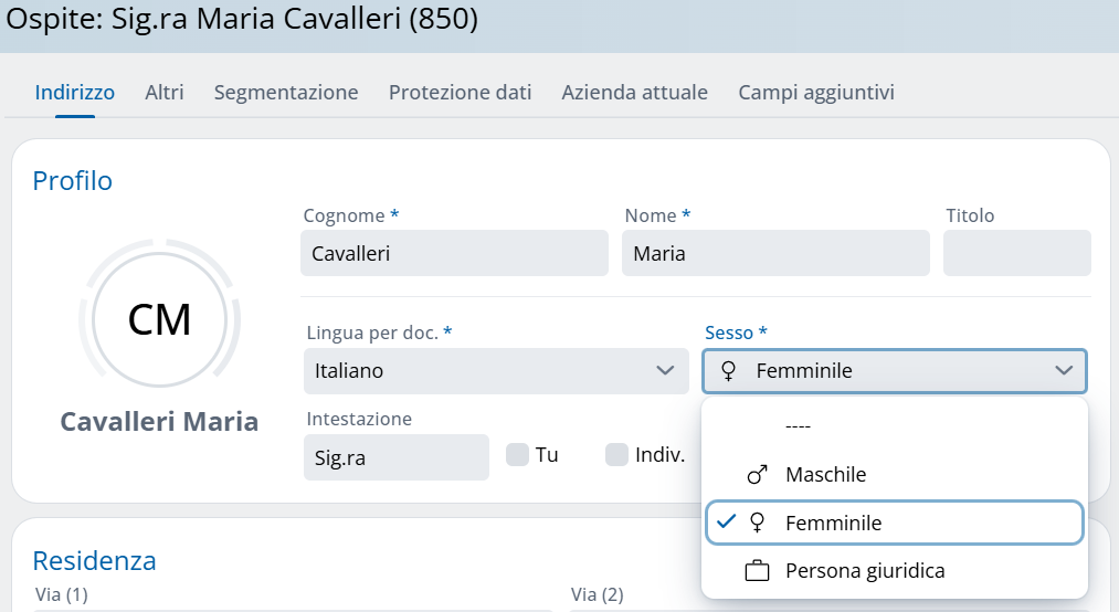 - È stata aggiunta un'icona di genere, che viene visualizzata sia nelle Informazioni rapide che nel Check-in Manager. Invece del precedente campo “Nome ospite”, ora viene visualizzato il nome comprensivo di appellativo. Sono state aggiunte le icone per uomo, donna, transgender e persona giuridica.