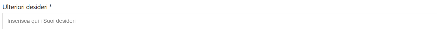 Facoltativamente è possibile aggiungere un testo segnaposto, affinché l’ospite comprenda meglio quale informazione deve essere inserita.Attivare l’opzione “Mostra etichetta (label)” affinché la descrizione del campo sia visibile nella landing page.