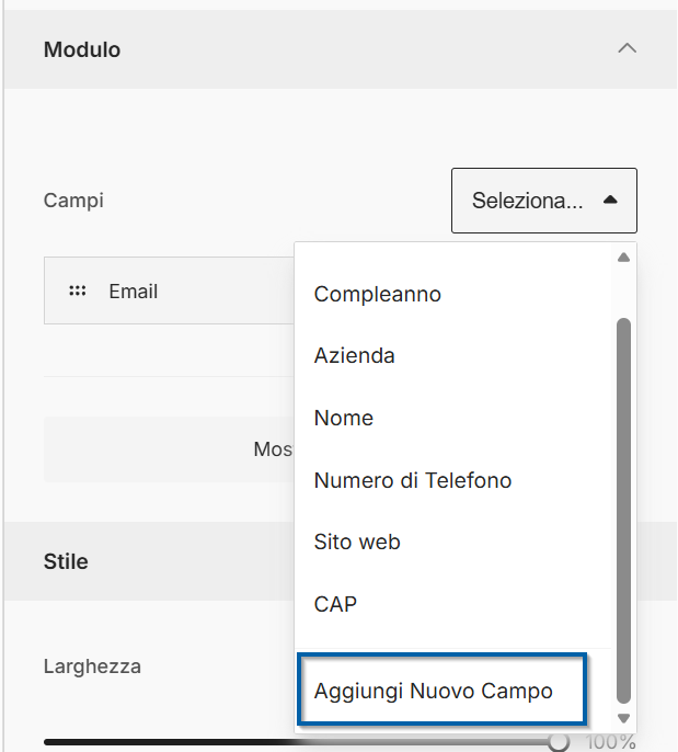 Aggiunta di campi personalizzati nella landing page