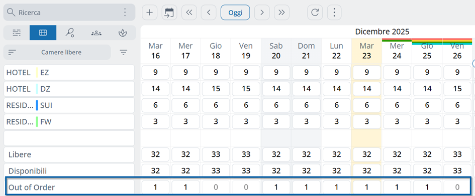 - Le camere e i letti Out of Order vengono conteggiati separatamente.