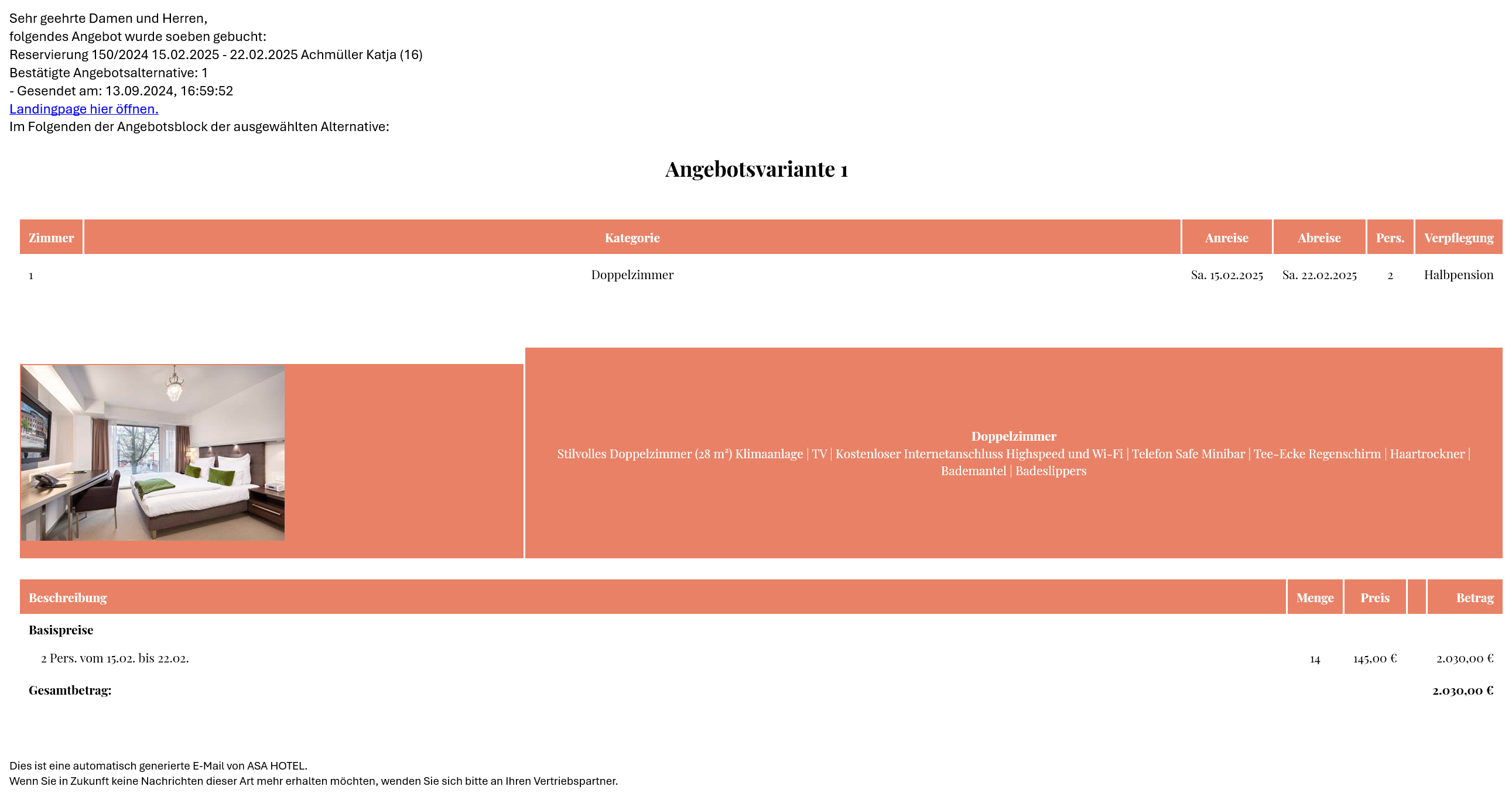 È inoltre possibile inserire nelle offerte un pulsante per l’invio di una richiesta di prenotazione. In questo modo non è necessario rispondere all’e-mail per comunicare l’interesse verso un’offerta: la richiesta può essere inviata direttamente tramite il pulsante.