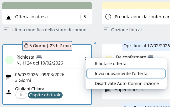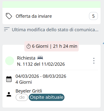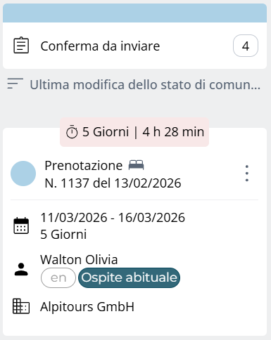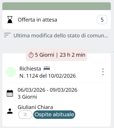 Prenotazioni per le quali la conferma all’ospite è ancora in sospeso.