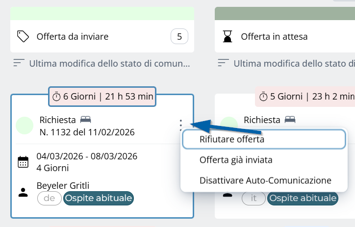 Offerte già inviate per le quali si attende il riscontro dell’ospite.