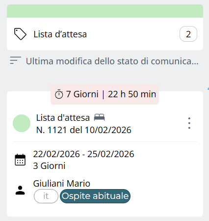 Panoramica della lista d’attesa per camere già prenotate.
