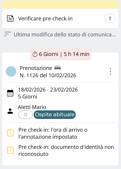 Prenotazioni con Pre Check-in completato che richiedono una verifica manuale, ad esempio: