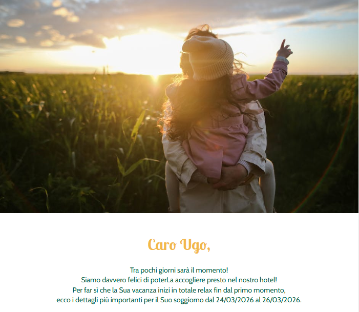 Con l'invio automatico di HTML, tipi di e-mail definiti come e-mail pre-stay, e post-stay, promemoria, auguri di compleanno, conferme prenotazioni possono essere inviati in modo completamente automatizzato. L'invio avviene senza intervento manuale sulla base di logiche configurabili (ad es. pre-stay 3 giorni prima dell'arrivo, post-stay 2 giorni a partenza, promemoria 1 giorno a l'invio dell'offerta) e in orari prestabiliti. Ciò consente una comunicazione con gli ospiti puntuale, coerente e scalabile, riducendo al contempo il costo manuale.