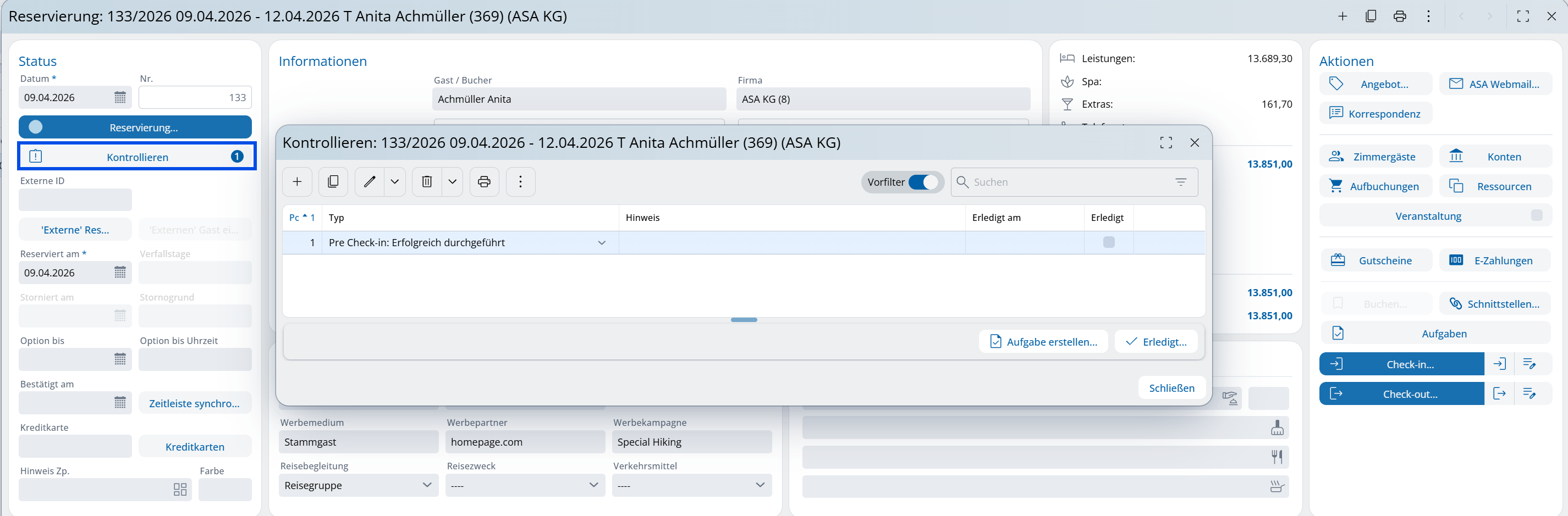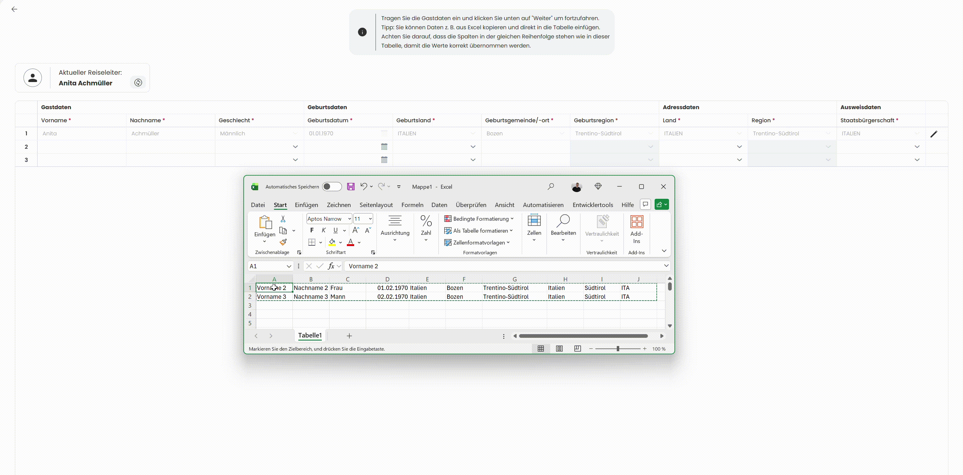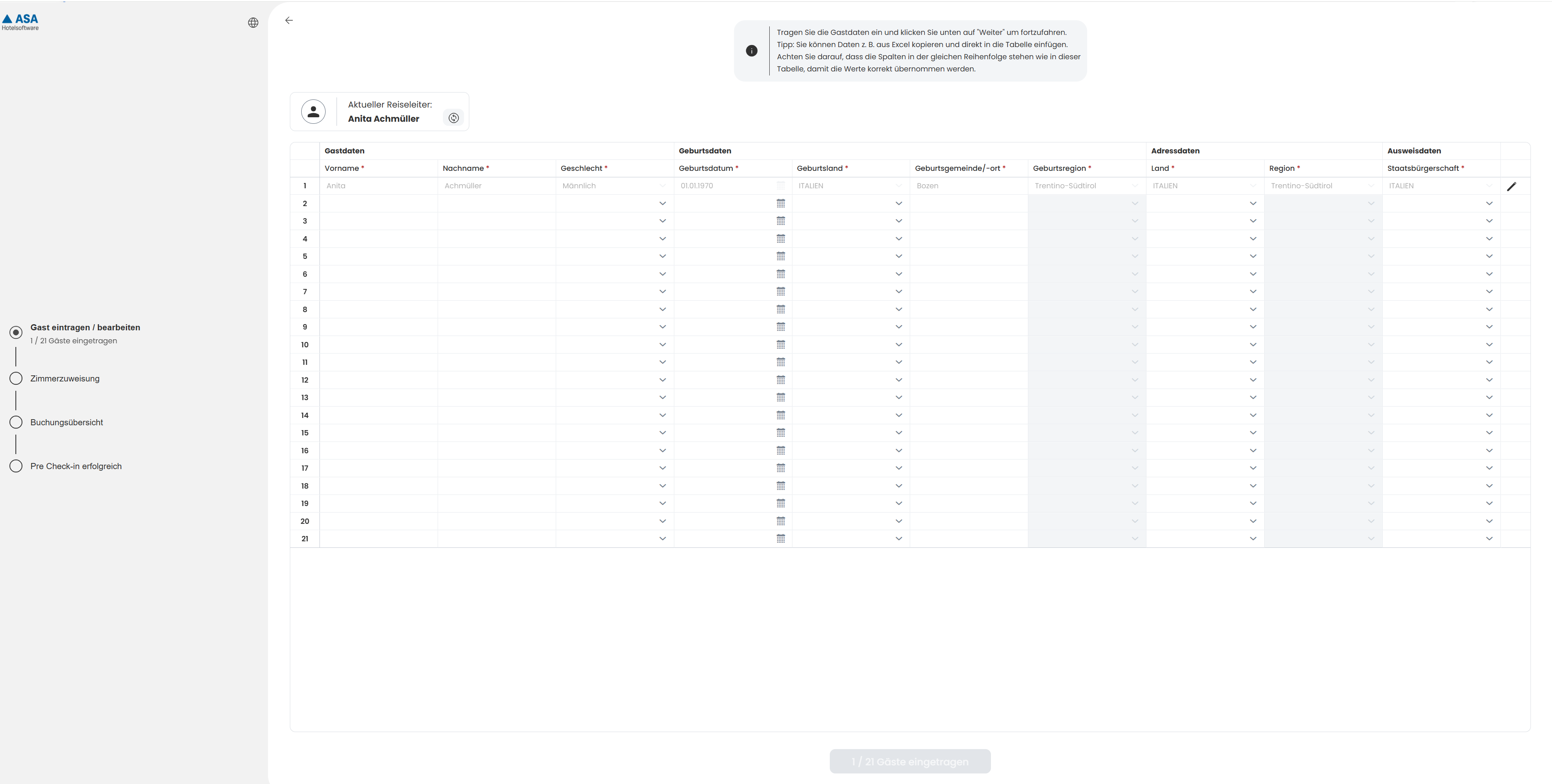 Con il pre check-in per gruppi di viaggio, gli ospiti possono inserire autonomamente i propri dati già prima dell’arrivo. In questo modo, il check-in in loco viene notevolmente velocizzato.